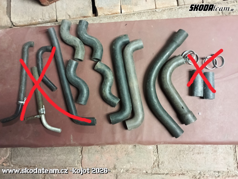 Prodám díly na Škoda Š MB a Š 100 Hadice chlazení Š MB s Š 100 2 ks horní, 1 ks spodní - nové, 1 ks spodní - použitá Ovládání sytiče, topení a ventil topení Náhon tachometru