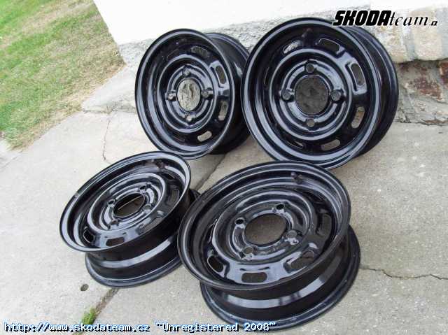 Prodám 4 kusy plechových ráfků 4,5 x 13, nastříkané černým lesklým komaxitem, včetně matek, 1disk/100kč. Možno poslat na dobírku - balné +100kč, pošta +2x 69kč. Rokycany