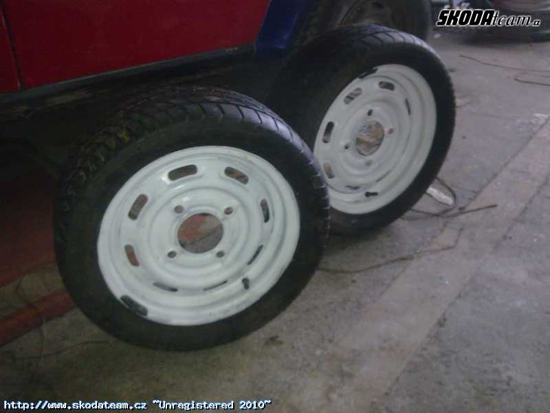 nápravy z Mka vše nové nebo po repasi, veškeré gumy, čepy brzdy atd.. mám i kotouče na zadní nápravu ale ty na vozidle nejsou ještě to není pořádně otestované, kola předek 7Jx13 gumy 175/55 Dunlop a zadek 8Jx13 gumy 175/55 Dunlop (je na nich napsán tento rozměr, velikost je 205/50 R13 jen kvuli policie)