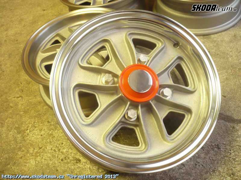 Prodam na škoda 1000 - 130 al kola 4x130 - 5JX13 - 4 kusy kola jsou chem.odlakovane +jemna balotina,vložky pod matice jsou všechny,lemy nejsou odrene,jsou připravene na lak nebo lešteni viz posl.foto