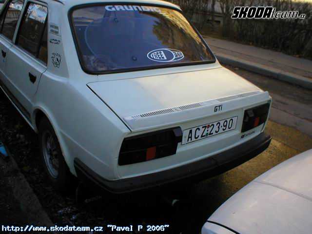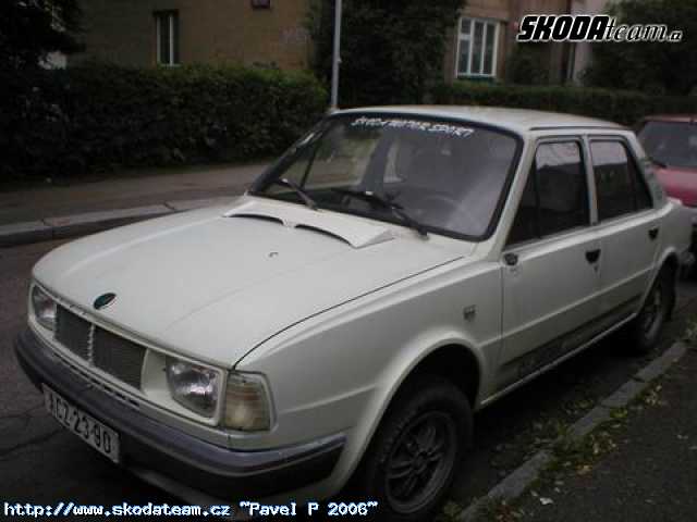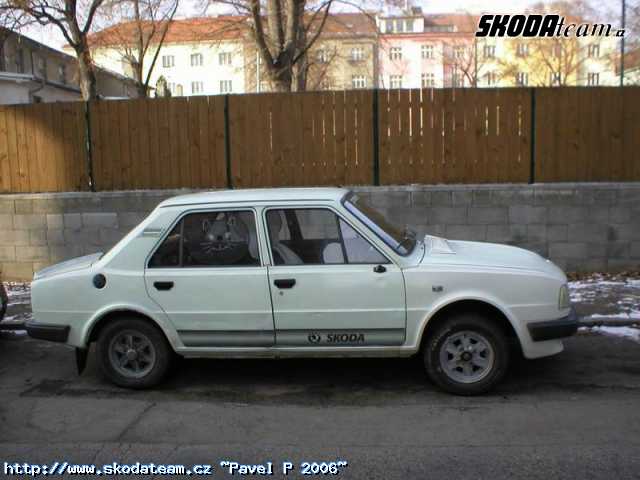 Prodám škodu 105s, r.v. 1986, STK+Emise do 02/2007, 3. majitel , motor 105 - naj. 120tis km., plně pojízdná, na motoru nová vodní pumpa, kabely svíčky a víčko rozdělovače,vzd. filtr, silenbloky, motor je seřízený, před rokem nové tlumiče Kayaba, nový spojkový a brzdový válec, nové pakny a lana ruč. brzdy, přední sedačky z GLS, nová zadní světla zatmavená, otáčkoměr, panel na radio, nové přední blatníky (pravý - laminát), vyvařené vršky podběhů, lehce zrezlé zadní lemy a konec pravého prahu. Kola kopretiny, pneu 165/80 vzorek tak 60-70%, k autu přidám náhradní motor 105 ve slušném stavu a nějaké díly. Jinak možno bez ALU kol, na plecháčích.(5000kč).